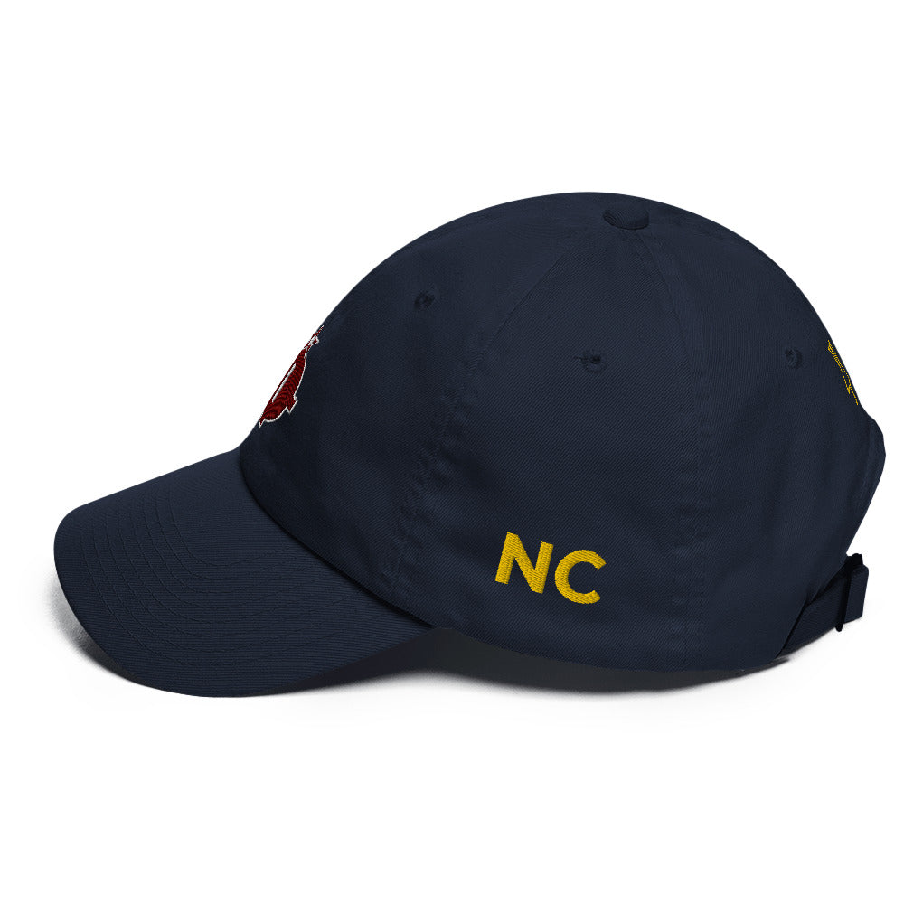 Caps are 100% chino cotton twill. Color is khaki. Please inquire regarding other colors or design variations. This design features the RUTHERFORD CO - MARCHMAN FIELD facility (FQD; KFQD) in RUTHERFORDTON; NORTH CAROLINA (NC).