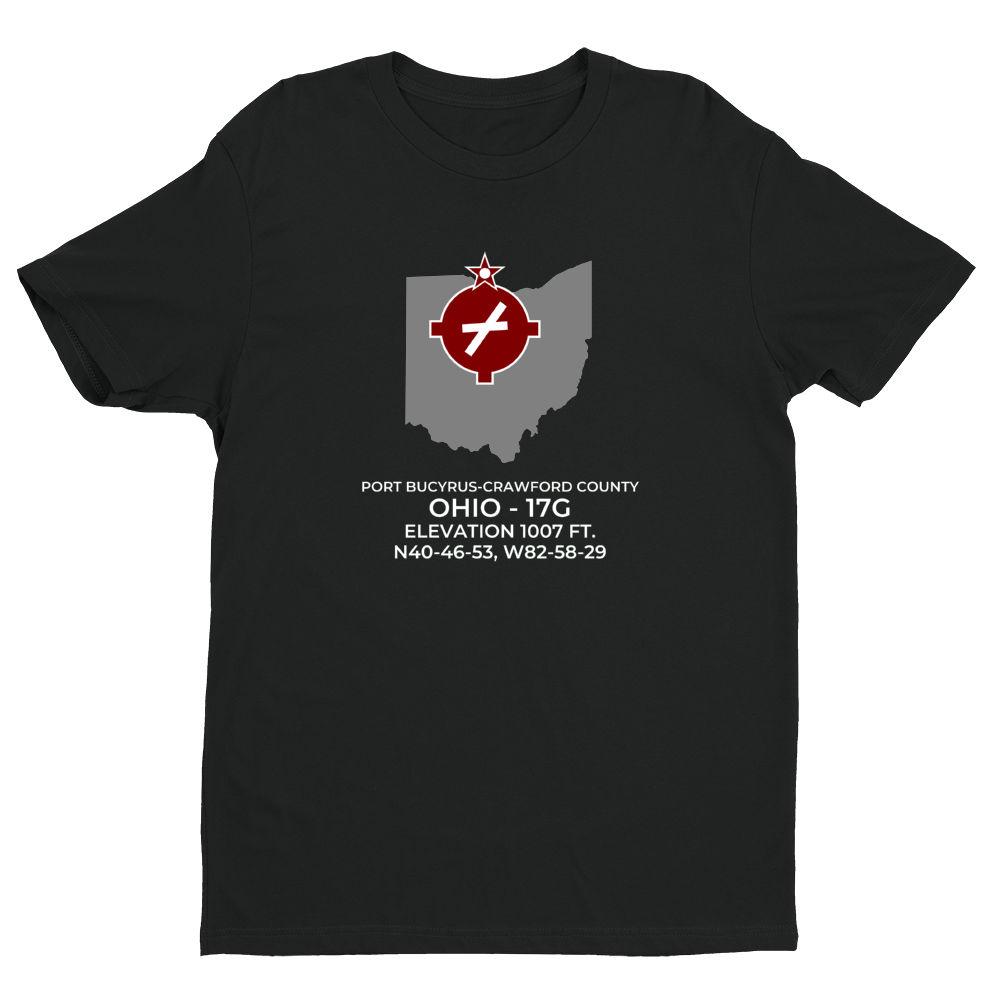 Shirts are 100% combed ring-spun cotton. Please inquire regarding other colors or design variations. This design features the PORT BUCYRUS-CRAWFORD COUNTY facility (17G) in BUCYRUS; OHIO (OH).