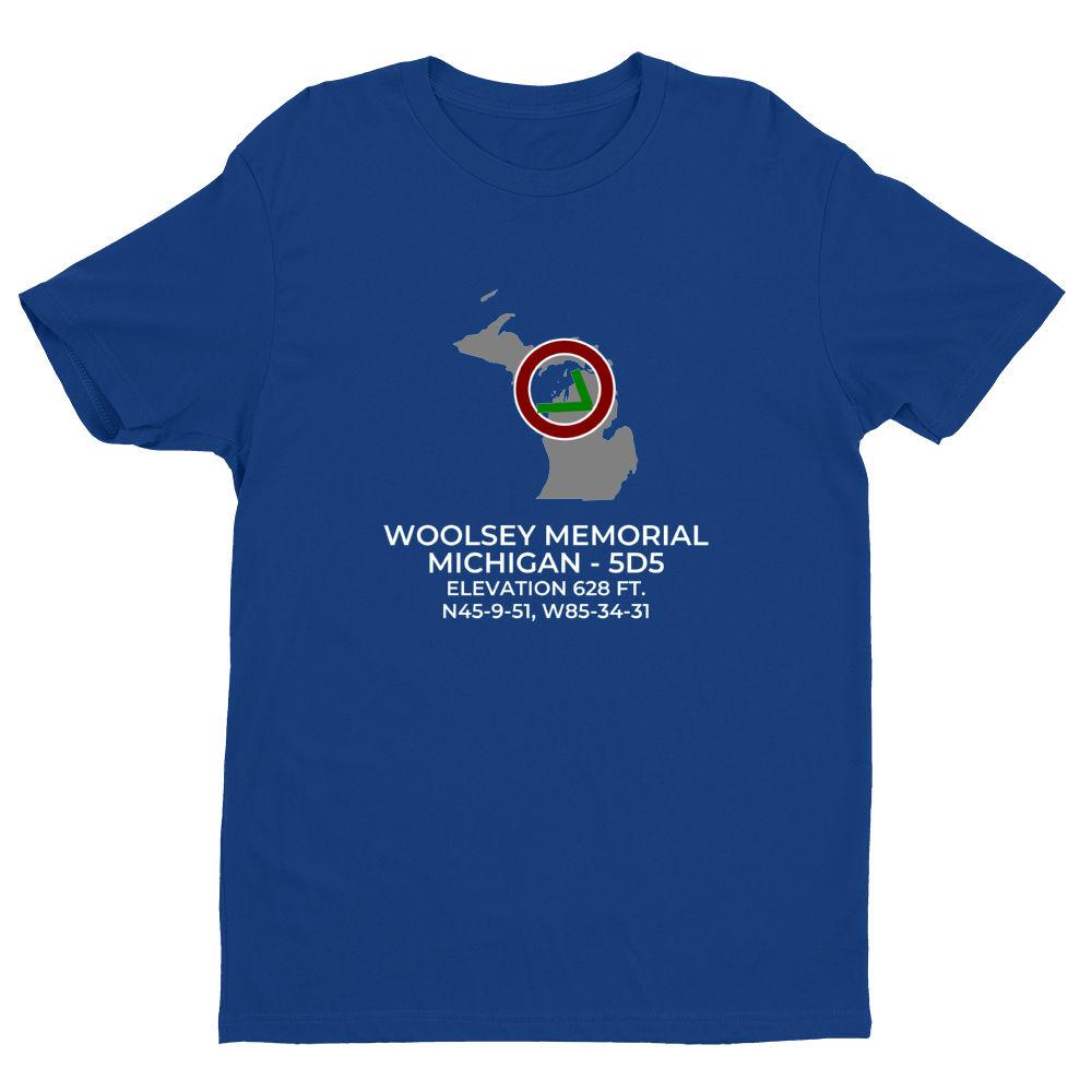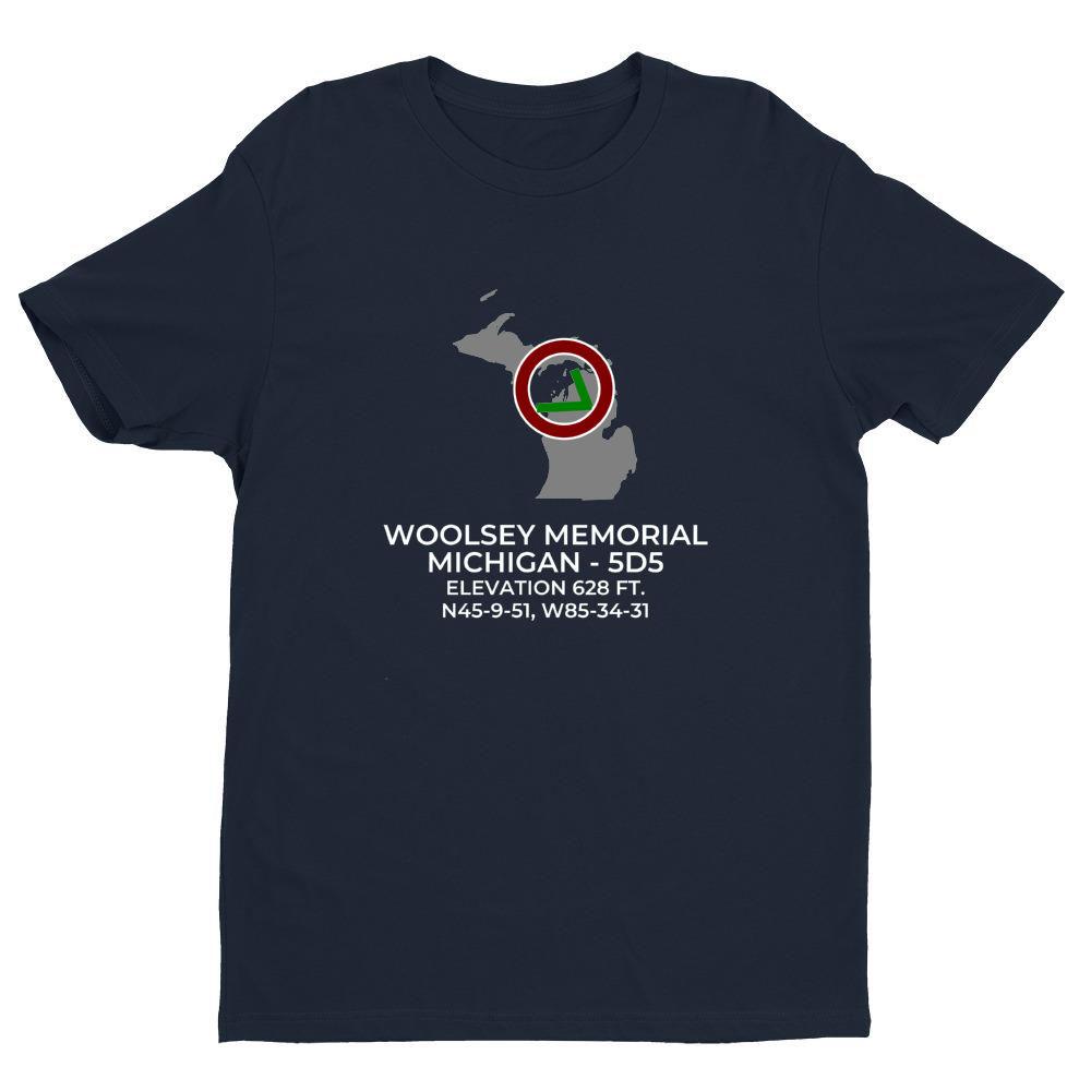 Shirts are 100% combed ring-spun cotton. Please inquire regarding other colors or design variations. This design features the WOOLSEY MEMORIAL facility (5D5) in NORTHPORT; MICHIGAN (MI).