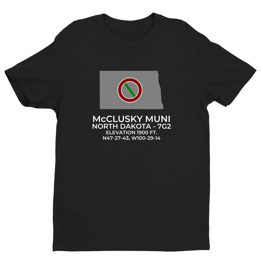 Shirts are 100% ring-spun cotton. Please inquire regarding other colors, apparel or design variations. This design features the McCLUSKY MUNI facility (7G2) in McCLUSKY; NORTH DAKOTA (ND).