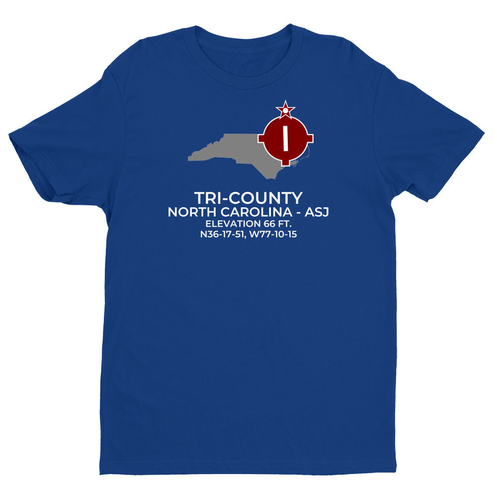 Shirts are 100% ring-spun cotton. Please inquire regarding other colors, apparel or design variations. This design features the TRI-COUNTY facility (ASJ; KASJ) in AHOSKIE; NORTH CAROLINA (NC).