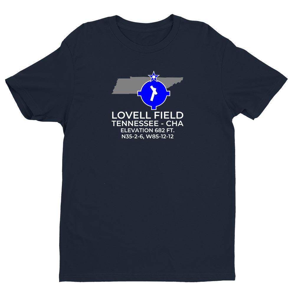 Shirts are 100% combed ring-spun cotton. Please inquire regarding other colors or design variations. This design features the LOVELL FIELD facility (CHA; KCHA) in CHATTANOOGA; TENNESSEE (TN).