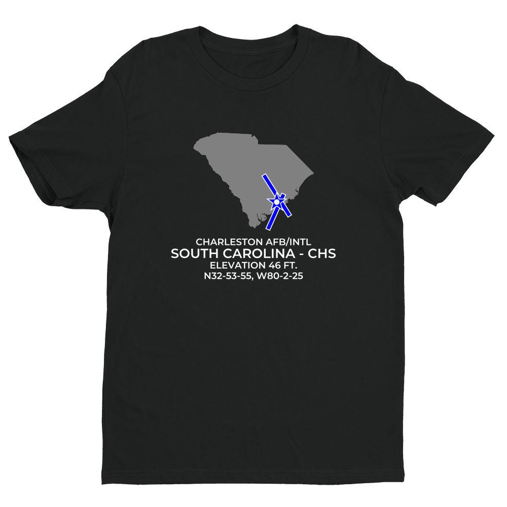 Shirts are 100% combed ring-spun cotton. Please inquire regarding other colors or design variations. This design features the CHARLESTON AFB/INTL facility (CHS; KCHS) in CHARLESTON; SOUTH CAROLINA (SC).