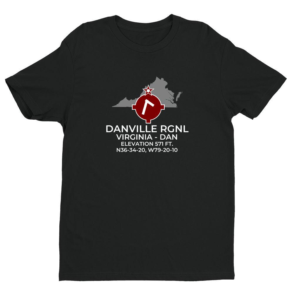 Shirts are 100% combed ring-spun cotton. Please inquire regarding other colors or design variations. This design features the DANVILLE RGNL facility (DAN; KDAN) in DANVILLE; VIRGINIA (VA).