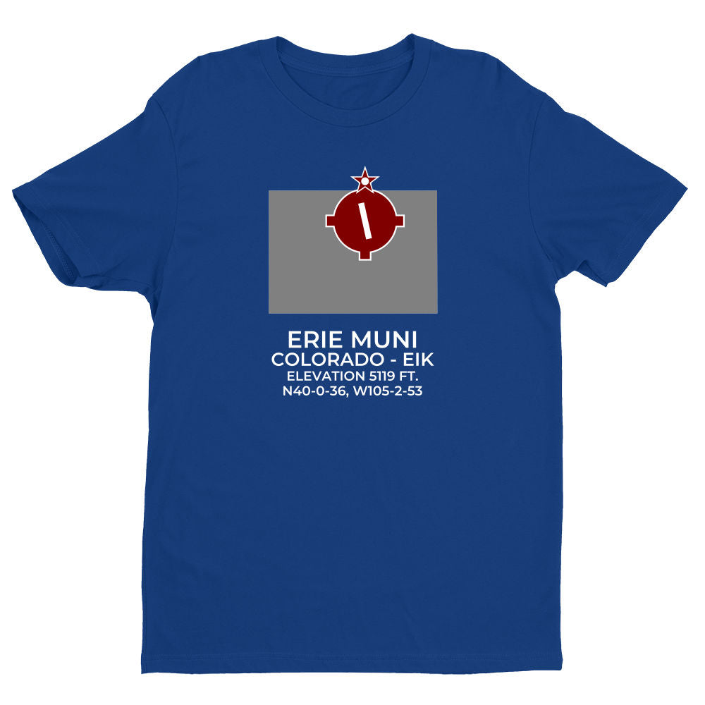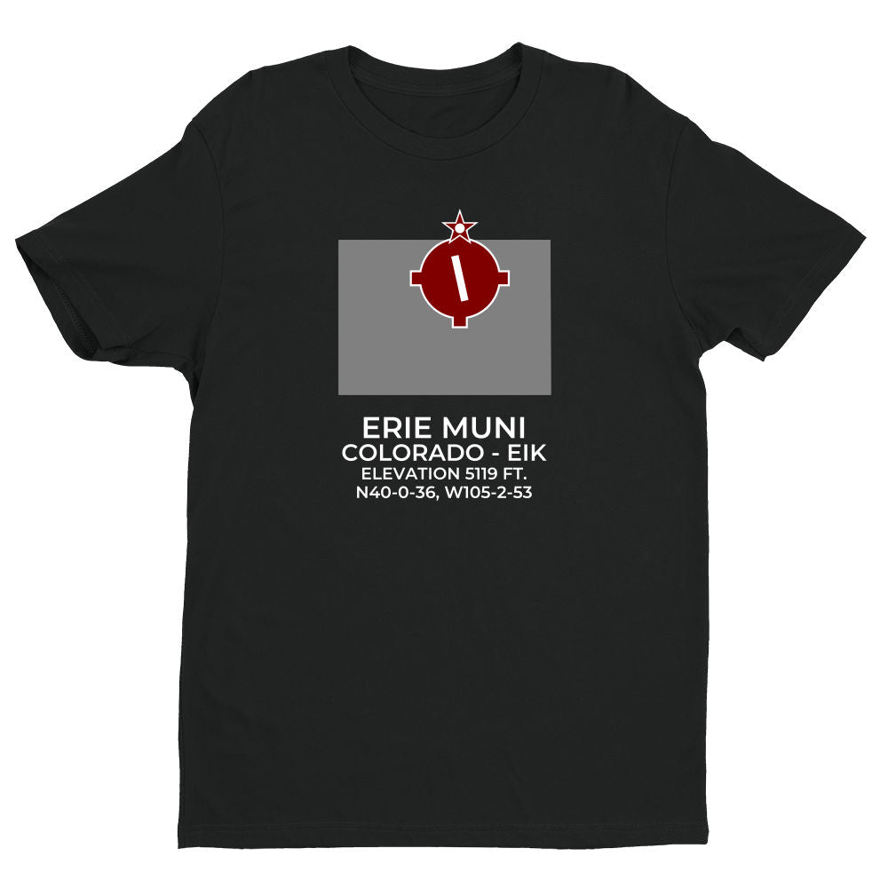 Shirts are 100% ring-spun cotton. Please inquire regarding other colors, apparel or design variations. This design features the ERIE MUNI facility (EIK; KEIK) in ERIE; COLORADO (CO).