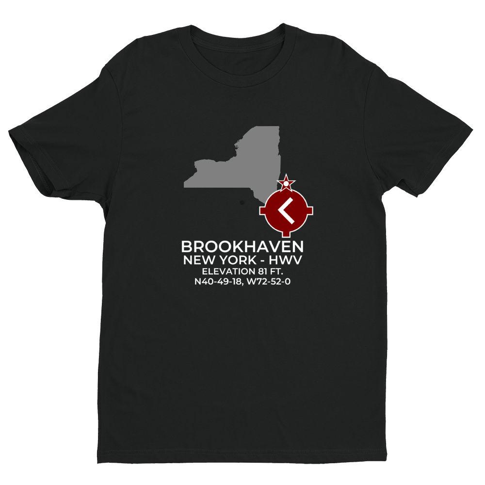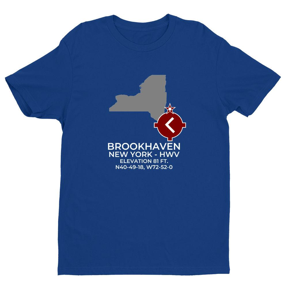 Shirts are 100% combed ring-spun cotton. Please inquire regarding other colors or design variations. This design features the BROOKHAVEN facility (HWV; KHWV) in SHIRLEY; NEW YORK (NY).