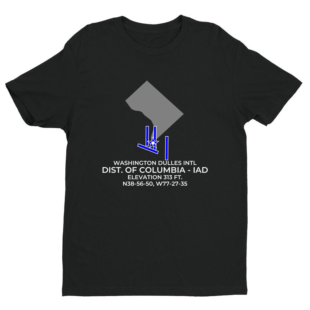 Shirts are 100% combed ring-spun cotton. Please inquire regarding other colors or design variations. This design features the WASHINGTON DULLES INTL facility (IAD; KIAD) in WASHINGTON; DIST. OF COLUMBIA (DC).