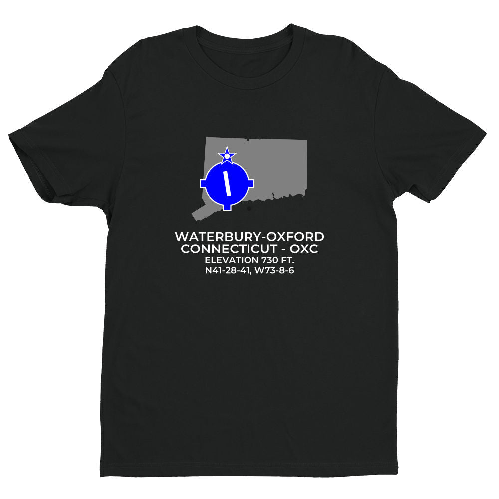 Shirts are 100% ring-spun cotton. Please inquire regarding other colors, apparel or design variations. This design features the WATERBURY-OXFORD facility (OXC; KOXC) in OXFORD; CONNECTICUT (CT).