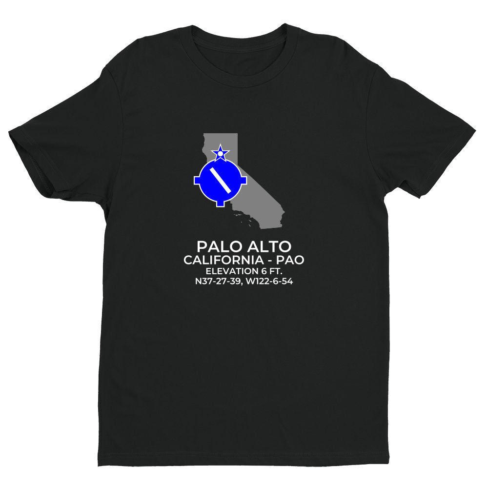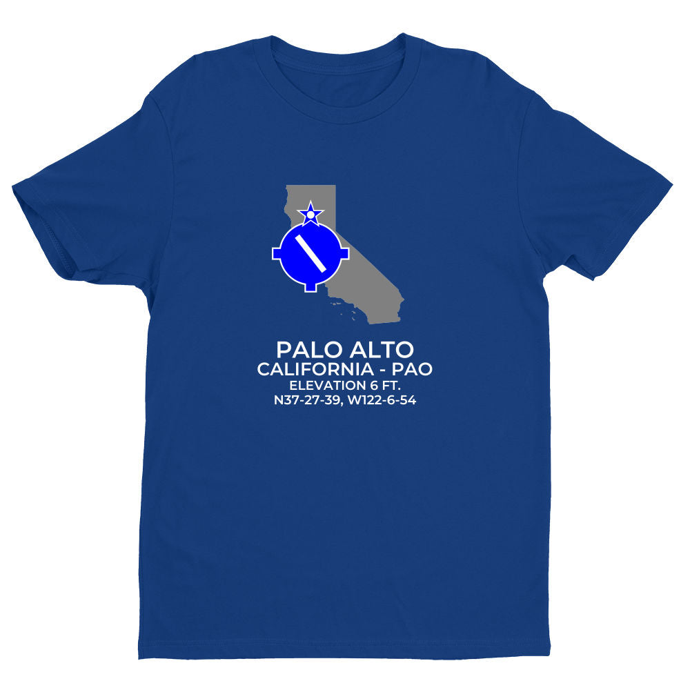 Shirts are 100% ring-spun cotton. Please inquire regarding other colors, apparel or design variations. This design features the PALO ALTO facility (PAO; KPAO) in PALO ALTO; CALIFORNIA (CA).