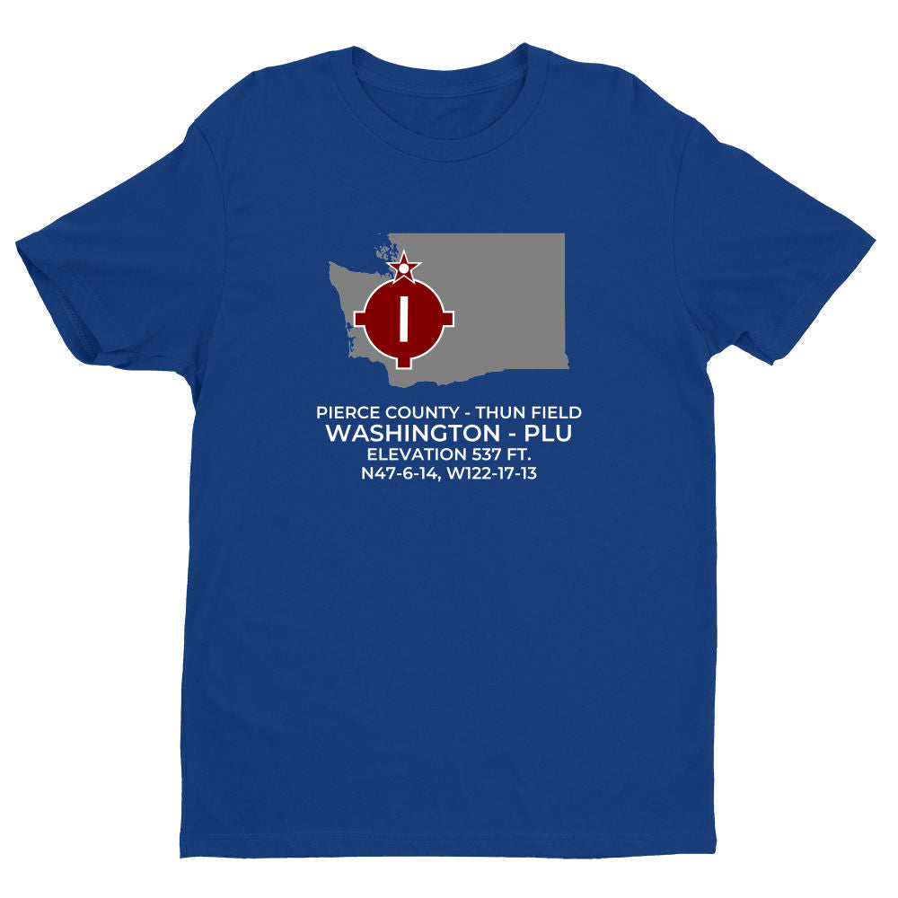 Shirts are 100% ring-spun cotton. Please inquire regarding other colors, apparel or design variations. This design features the PIERCE COUNTY - THUN FIELD facility (PLU; KPLU) in PUYALLUP; WASHINGTON (WA).