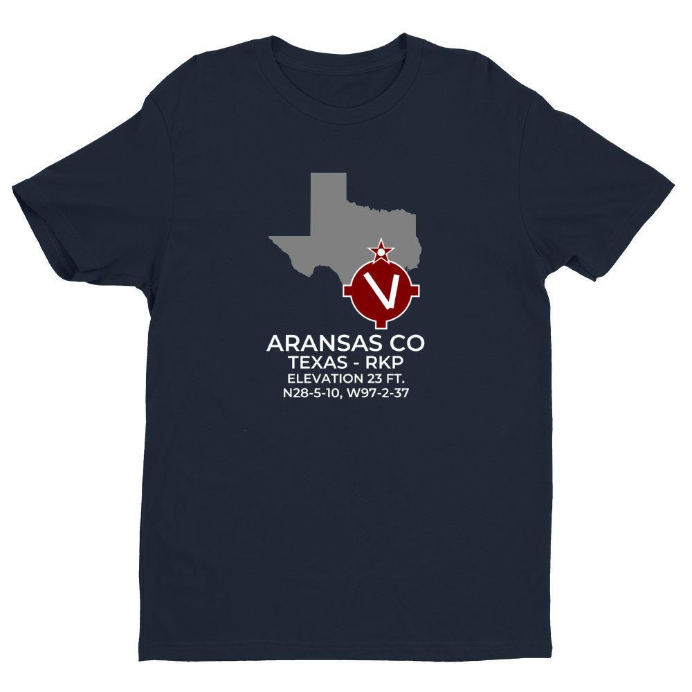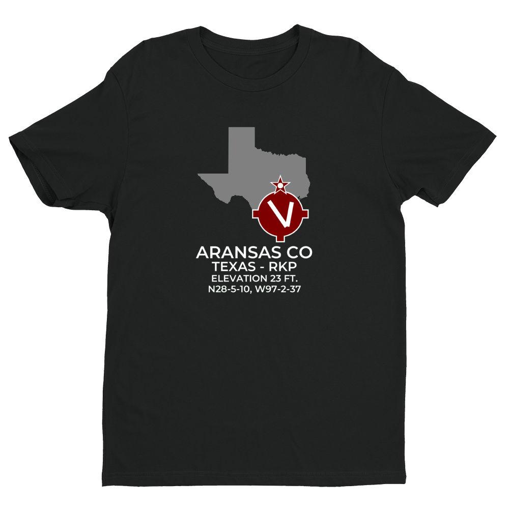 Shirts are 100% combed ring-spun cotton. Please inquire regarding other colors or design variations. This design features the ARANSAS CO facility (RKP; KRKP) in ROCKPORT; TEXAS (TX).