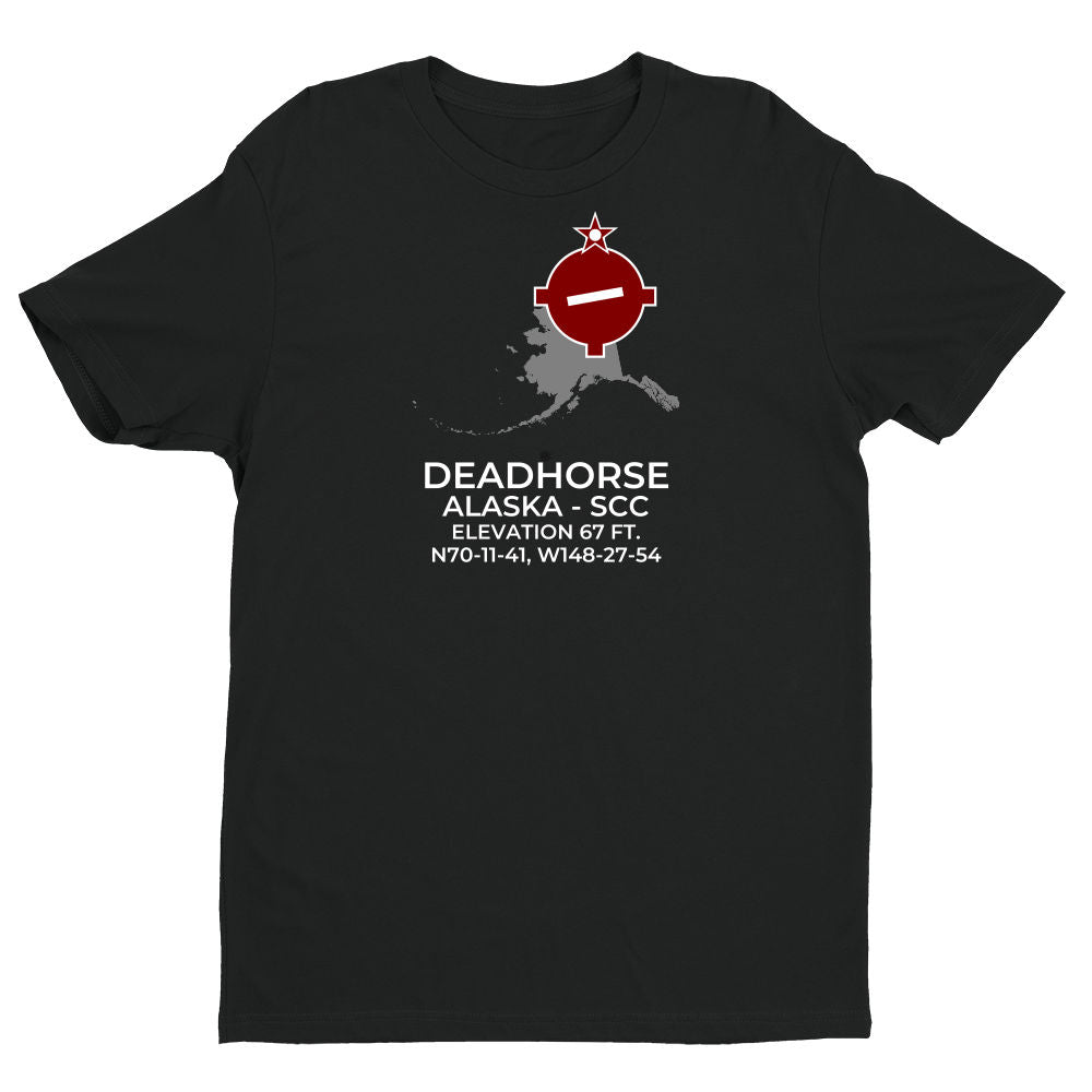 Shirts are 100% ring-spun cotton. Please inquire regarding other colors, apparel or design variations. This design features the DEADHORSE facility (SCC; PASC) in DEADHORSE; ALASKA (AK).