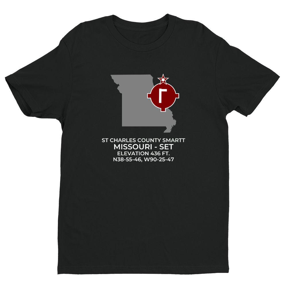 Shirts are 100% combed ring-spun cotton. Please inquire regarding other colors or design variations. This design features the ST CHARLES COUNTY SMARTT facility (SET; KSET) in ST CHARLES; MISSOURI (MO).