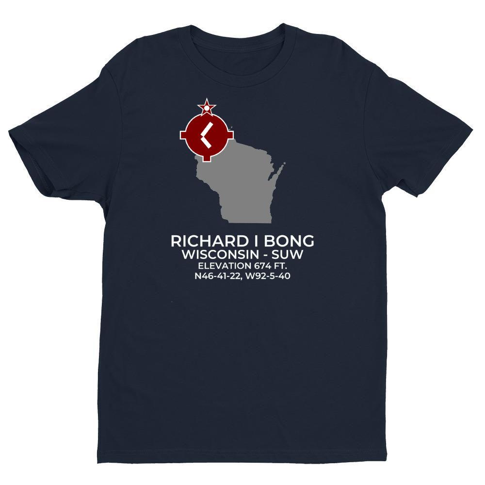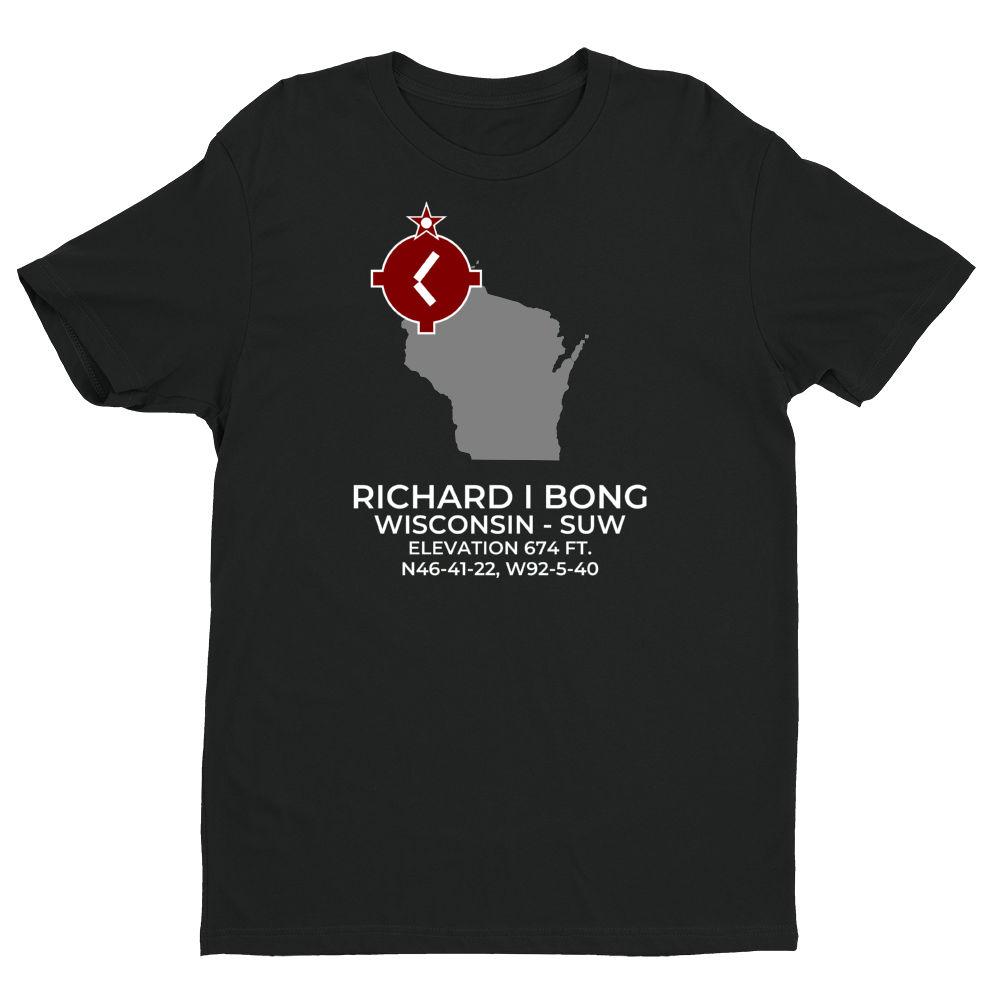 Shirts are 100% combed ring-spun cotton. Please inquire regarding other colors or design variations. This design features the RICHARD I BONG facility (SUW; KSUW) in SUPERIOR; WISCONSIN (WI).