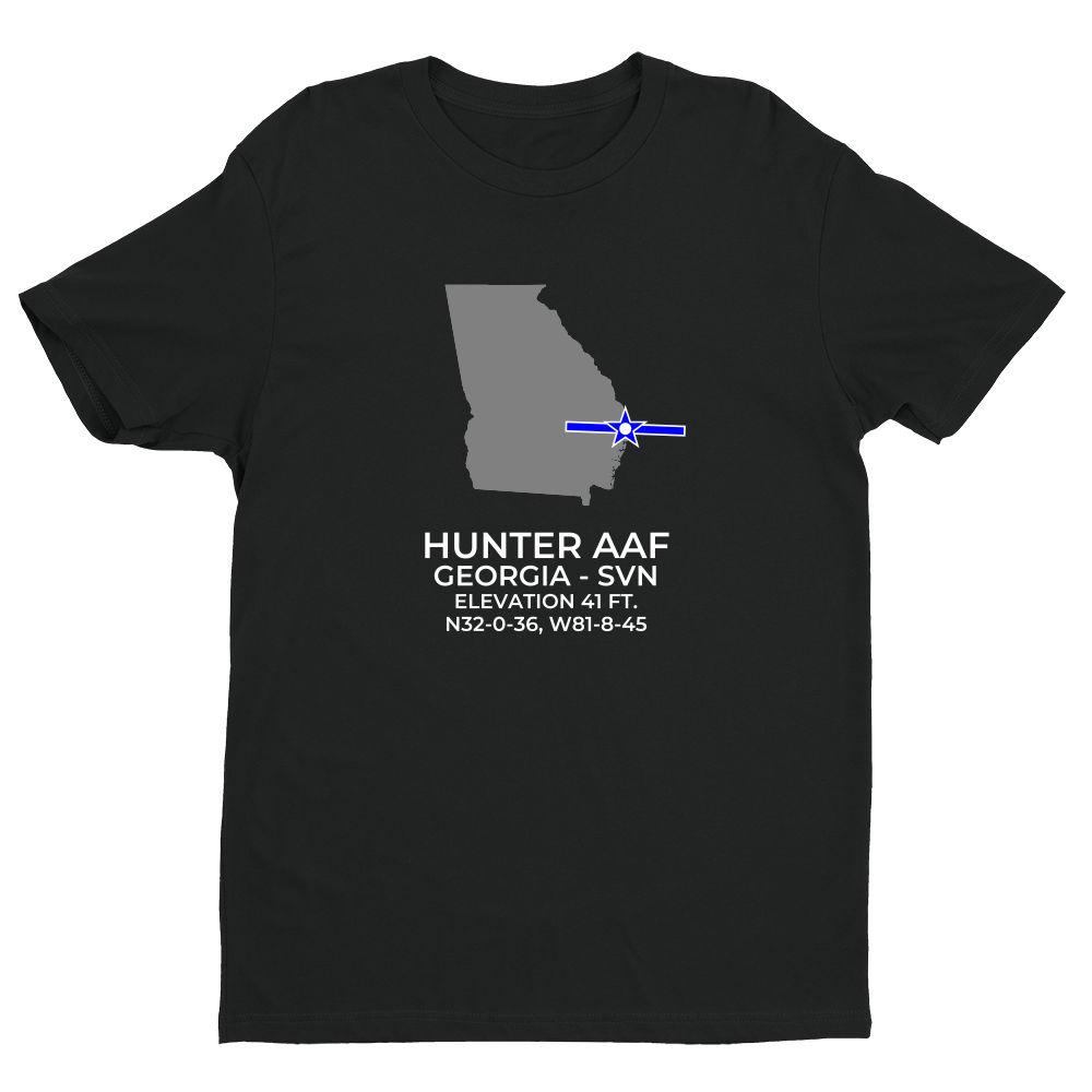 Shirts are 100% combed ring-spun cotton. Please inquire regarding other colors or design variations. This design features the HUNTER AAF facility (SVN; KSVN) in SAVANNAH; GEORGIA (GA).