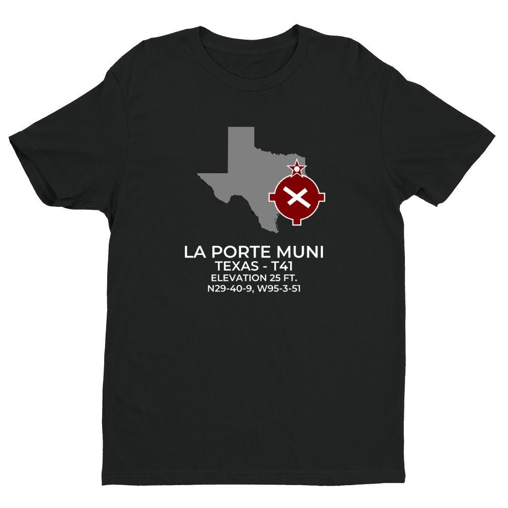 Shirts are 100% combed ring-spun cotton. Please inquire regarding other colors or design variations. This design features the LA PORTE MUNI facility (T41) in LA PORTE; TEXAS (TX).