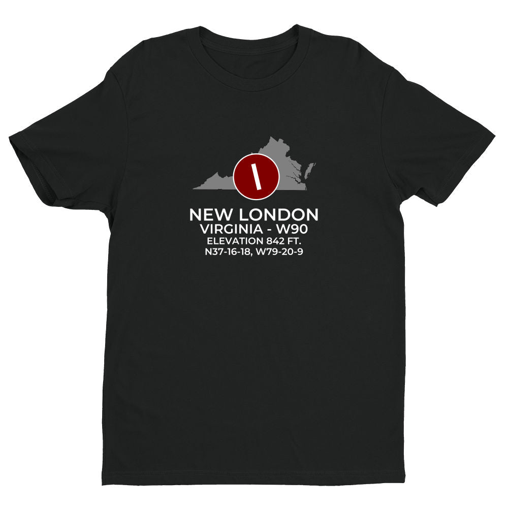 Shirts are 100% ring-spun cotton. Please inquire regarding other colors, apparel or design variations. This design features the NEW LONDON facility (W90) in FOREST; VIRGINIA (VA).
