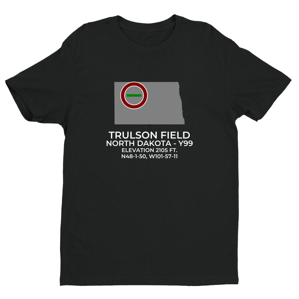 Shirts are 100% ring-spun cotton. Please inquire regarding other colors, apparel or design variations. This design features the TRULSON FIELD facility (Y99) in PLAZA; NORTH DAKOTA (ND).