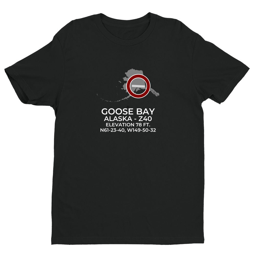 Shirts are 100% ring-spun cotton. Please inquire regarding other colors, apparel or design variations. This design features the GOOSE BAY facility (Z40) in GOOSE BAY; ALASKA (AK).