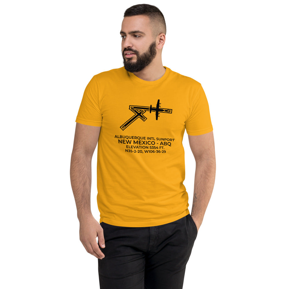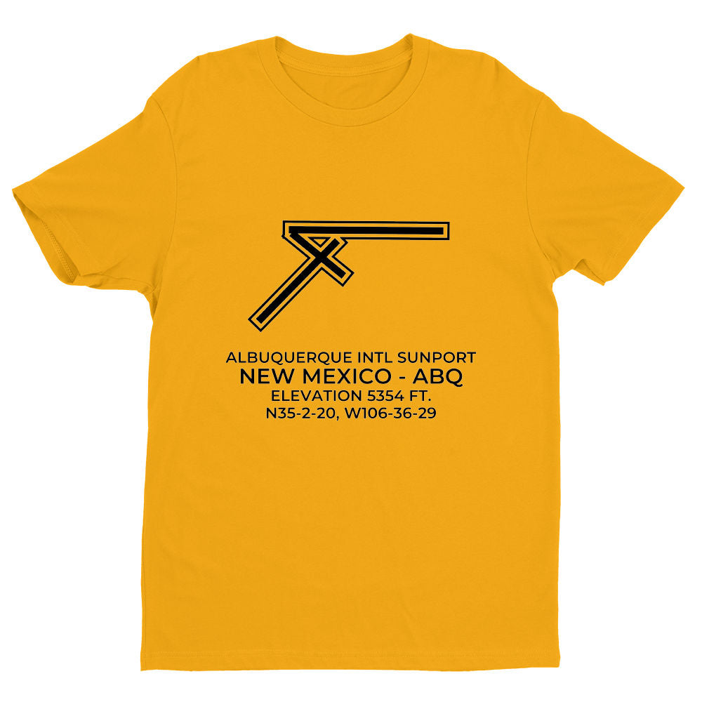 This t-shirt depicts ALBUQUERQUE INTL SUNPORT in ALBUQUERQUE; NEW MEXICO (ABQ; KABQ).