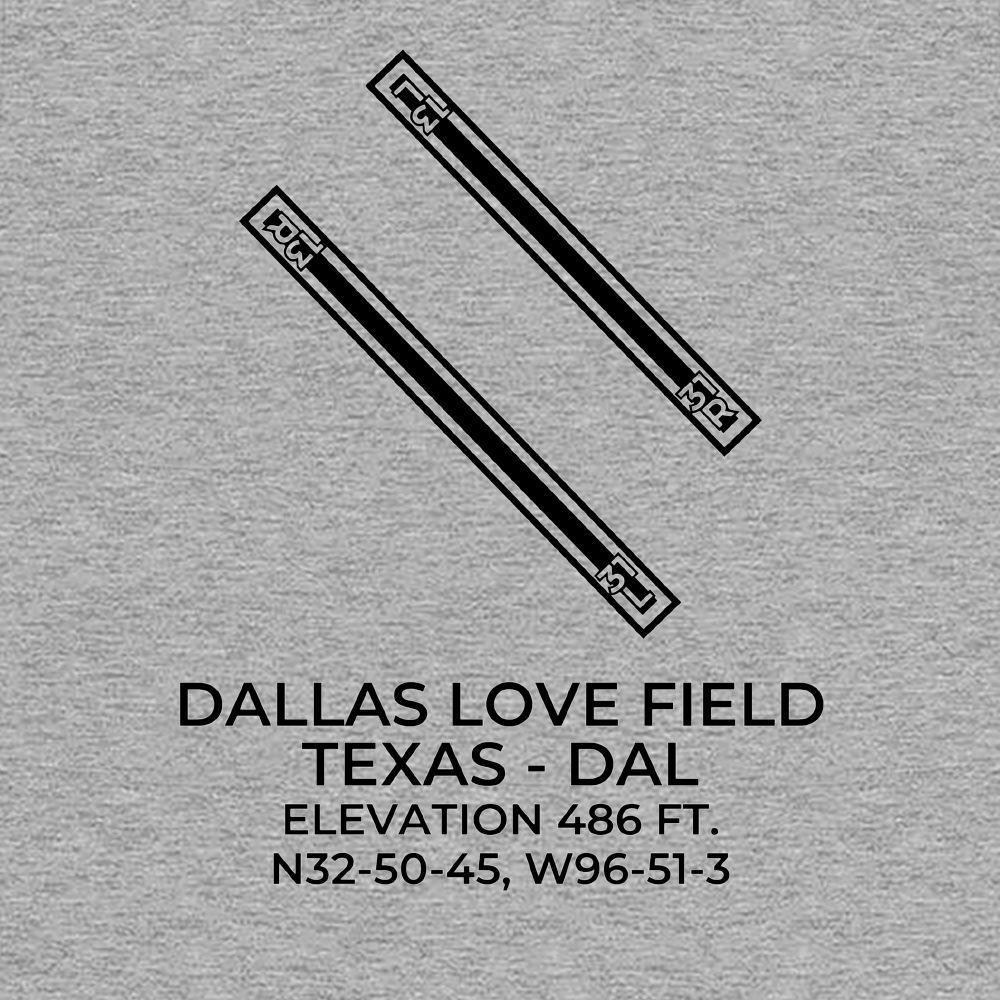This t-shirt depicts DALLAS LOVE FIELD in DALLAS; TEXAS (DAL; KDAL).