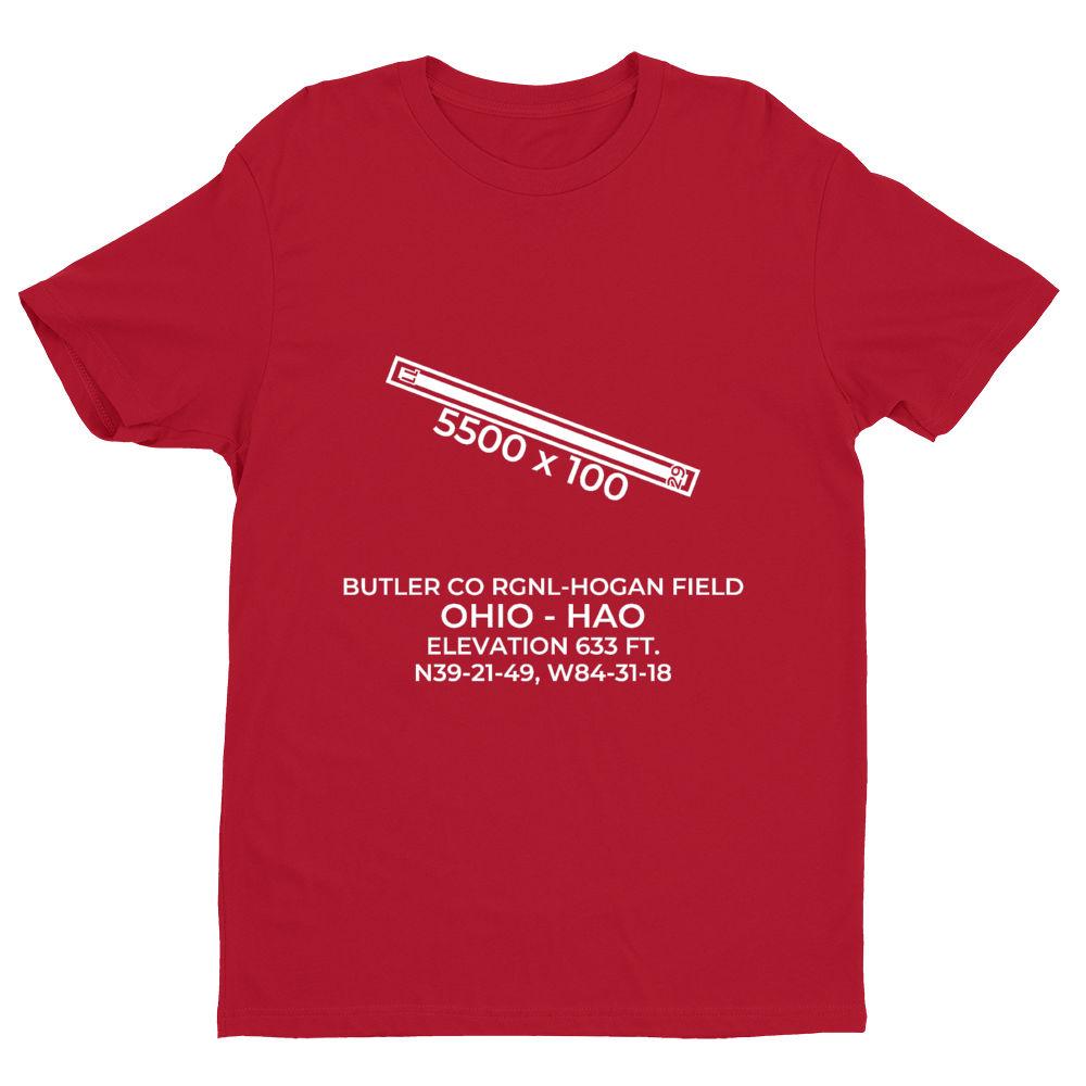 This t-shirt depicts BUTLER CO RGNL-HOGAN FIELD in HAMILTON; OHIO (HAO; KHAO).