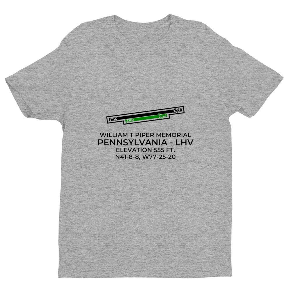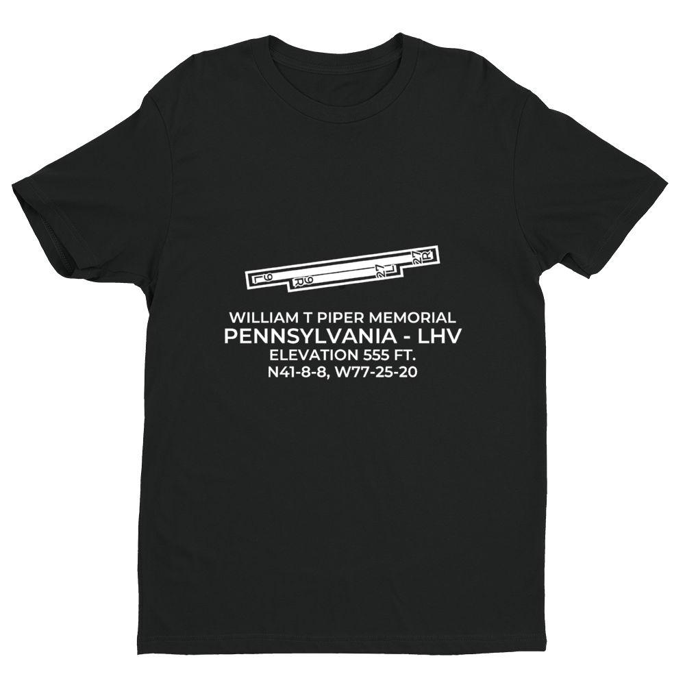 This t-shirt depicts WILLIAM T PIPER MEMORIAL in LOCK HAVEN; PENNSYLVANIA (LHV; KLHV).