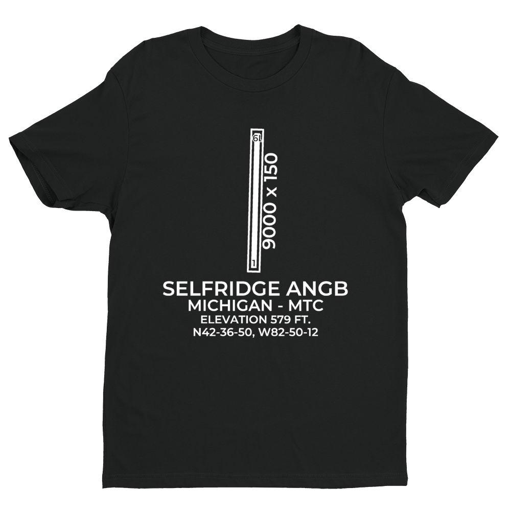 This t-shirt depicts SELFRIDGE ANGB in MOUNT CLEMENS; MICHIGAN (MTC; KMTC).