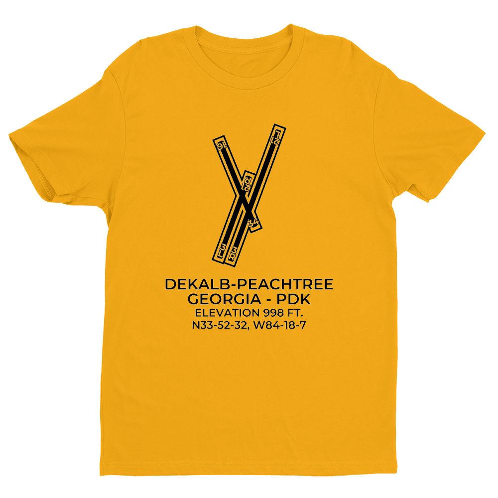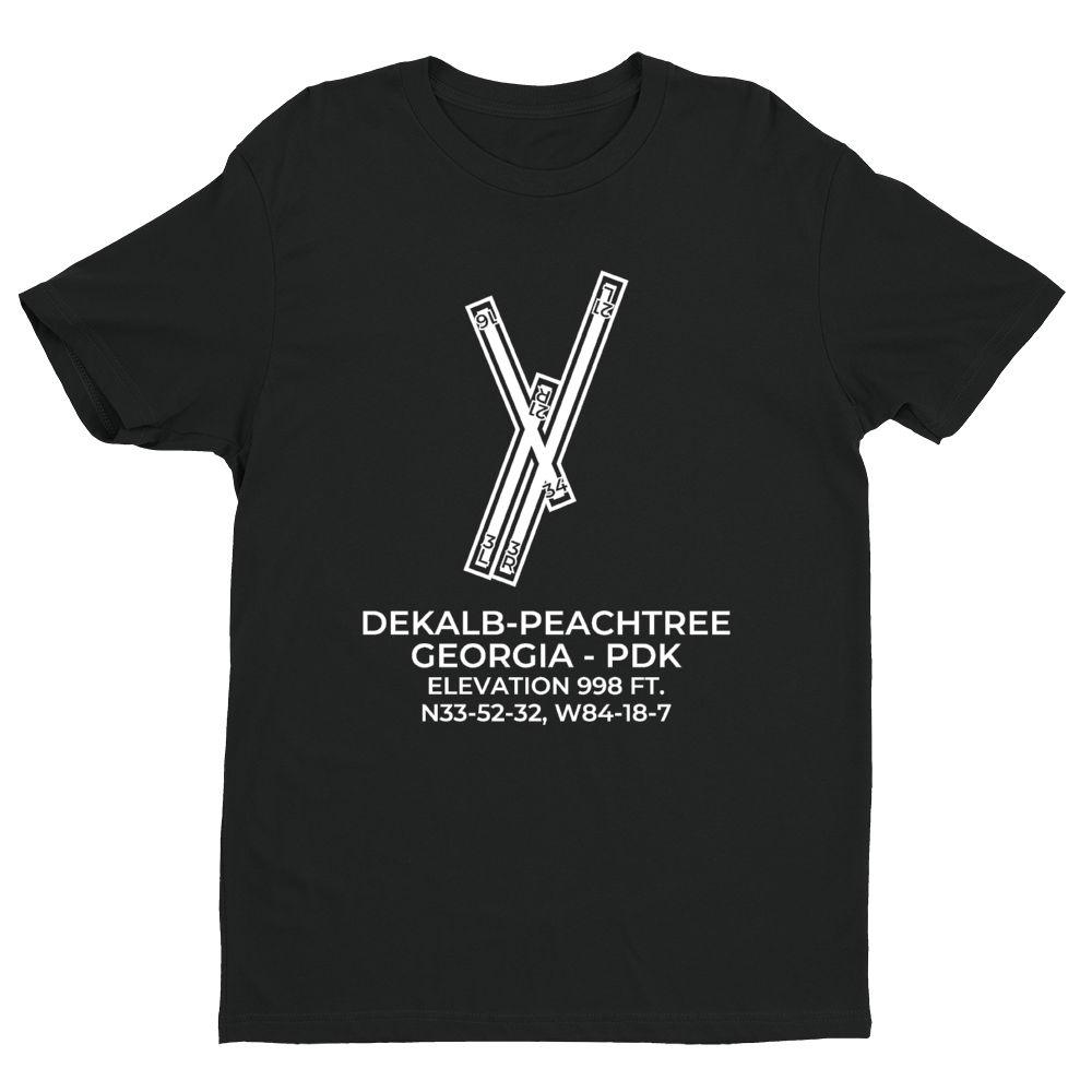 This t-shirt depicts DEKALB-PEACHTREE in ATLANTA; GEORGIA (PDK; KPDK).