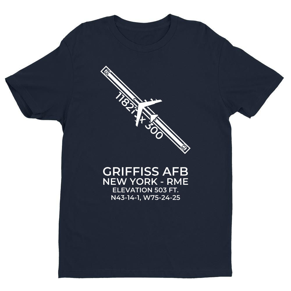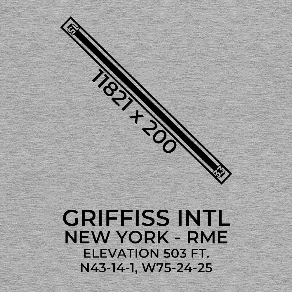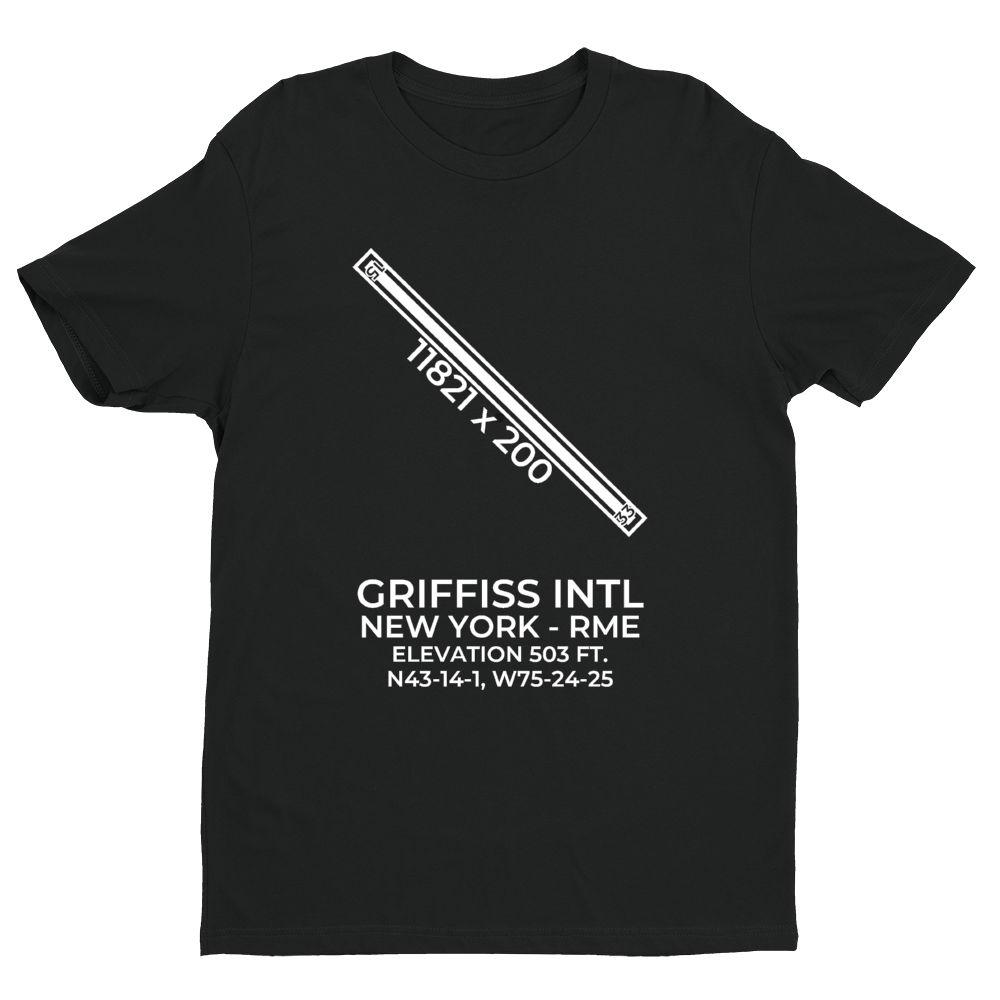 This t-shirt depicts GRIFFISS INTL in ROME; NEW YORK (RME; KRME).