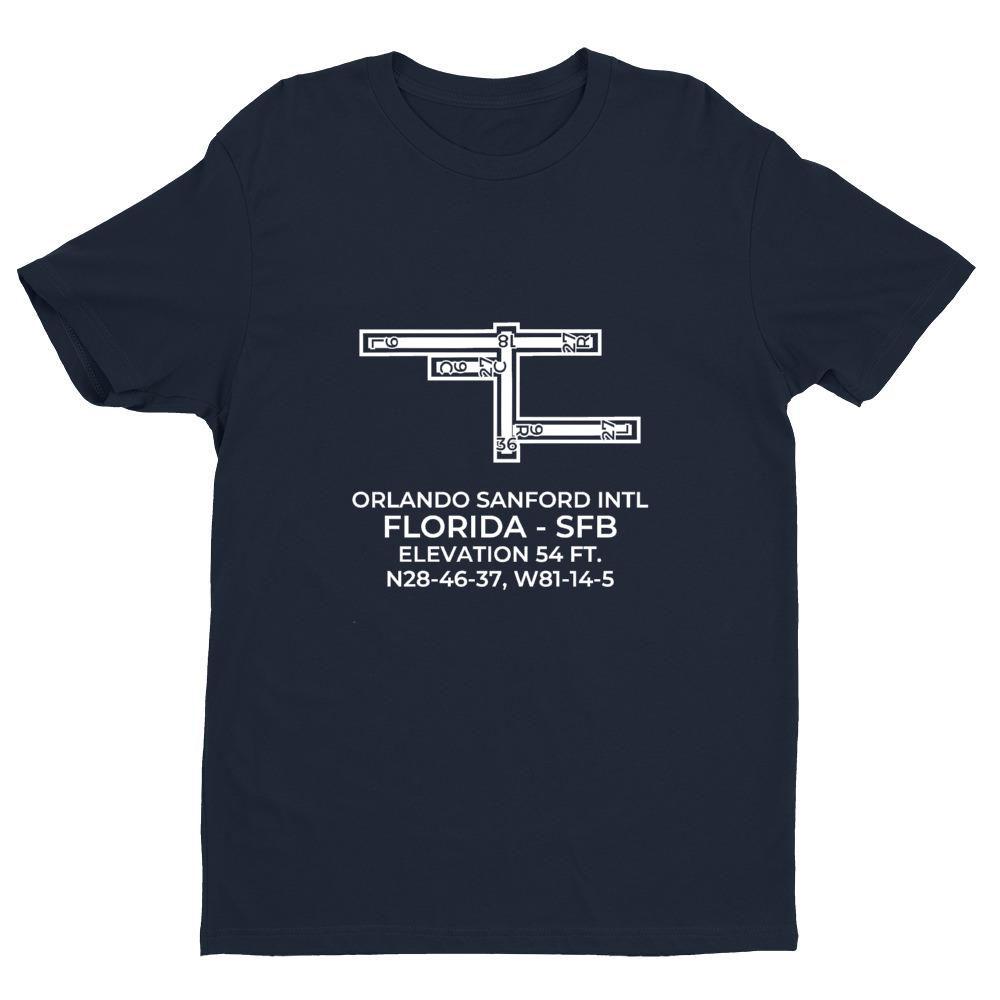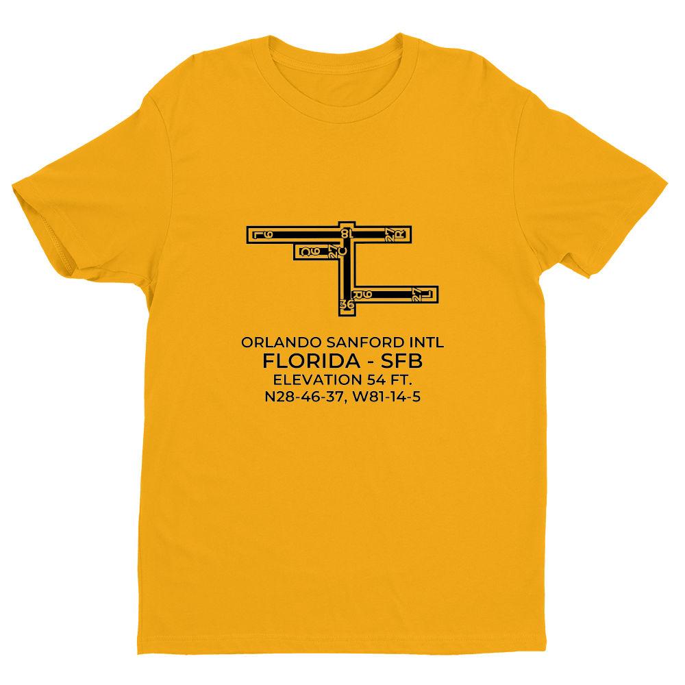 This t-shirt depicts ORLANDO SANFORD INTL in ORLANDO; FLORIDA (SFB; KSFB).