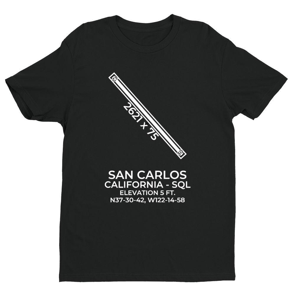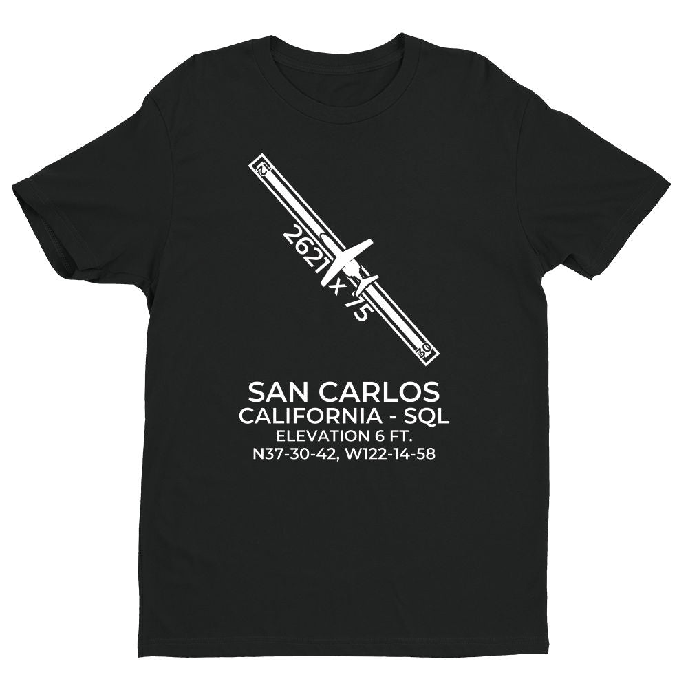 This t-shirt depicts SAN CARLOS; CALIFORNIA (SQL; KSQL).