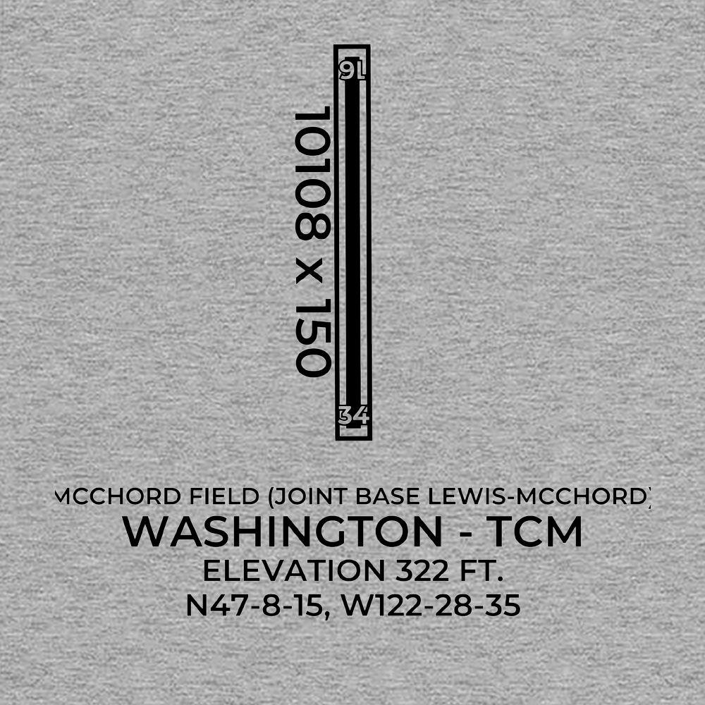 This t-shirt depicts MCCHORD FIELD (JOINT BASE LEWIS-MCCHORD) in TACOMA; WASHINGTON (TCM; KTCM).
