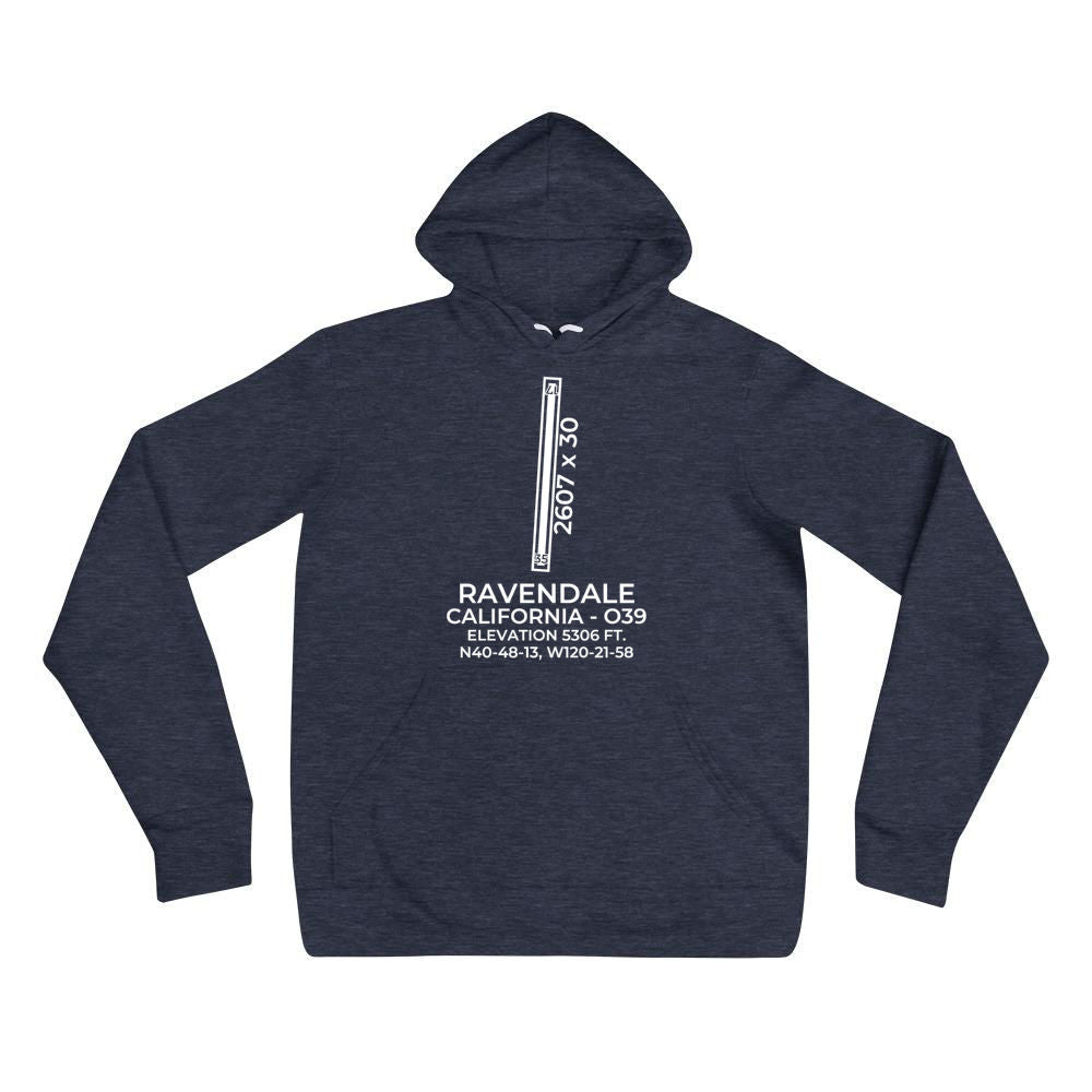 This hoodie depicts RAVENDALE; CALIFORNIA (O39).