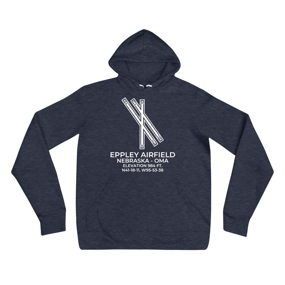 This hoodie depicts EPPLEY AIRFIELD near OMAHA; NEBRASKA (OMA; KOMA).