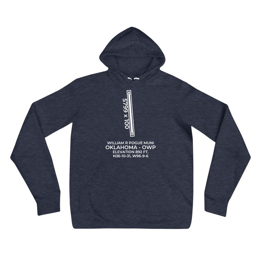 This hoodie depicts WILLIAM R POGUE MUNI near SAND SPRINGS; OKLAHOMA (OWP; KOWP).