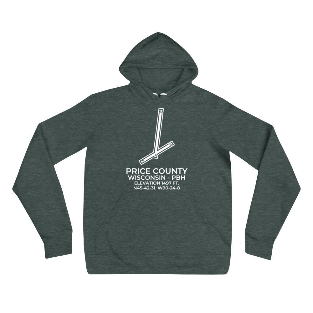 This hoodie depicts PRICE COUNTY in PHILLIPS; WISCONSIN (PBH; KPBH).