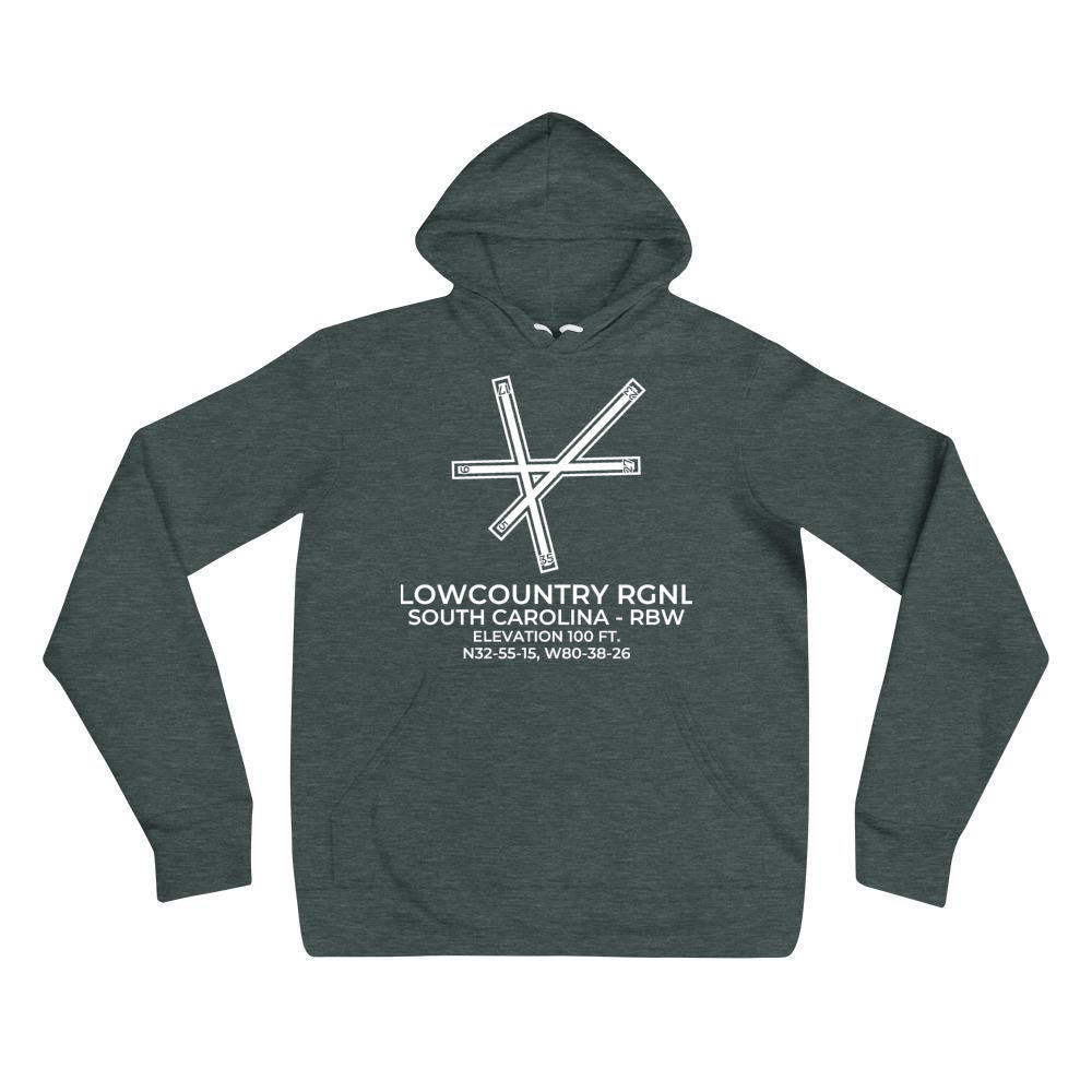 This hoodie depicts LOWCOUNTRY RGNL in WALTERBORO; SOUTH CAROLINA (RBW; KRBW).