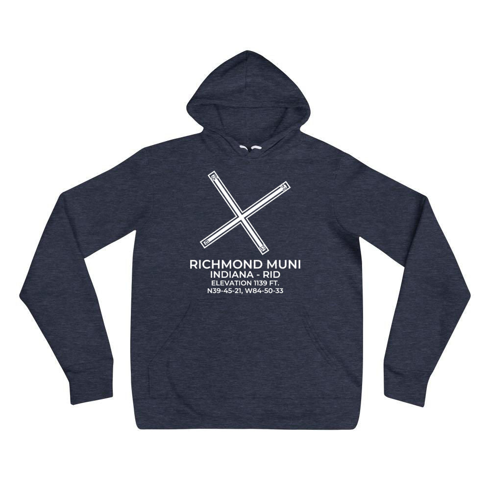 This hoodie depicts RICHMOND MUNI near RICHMOND; INDIANA (RID; KRID).