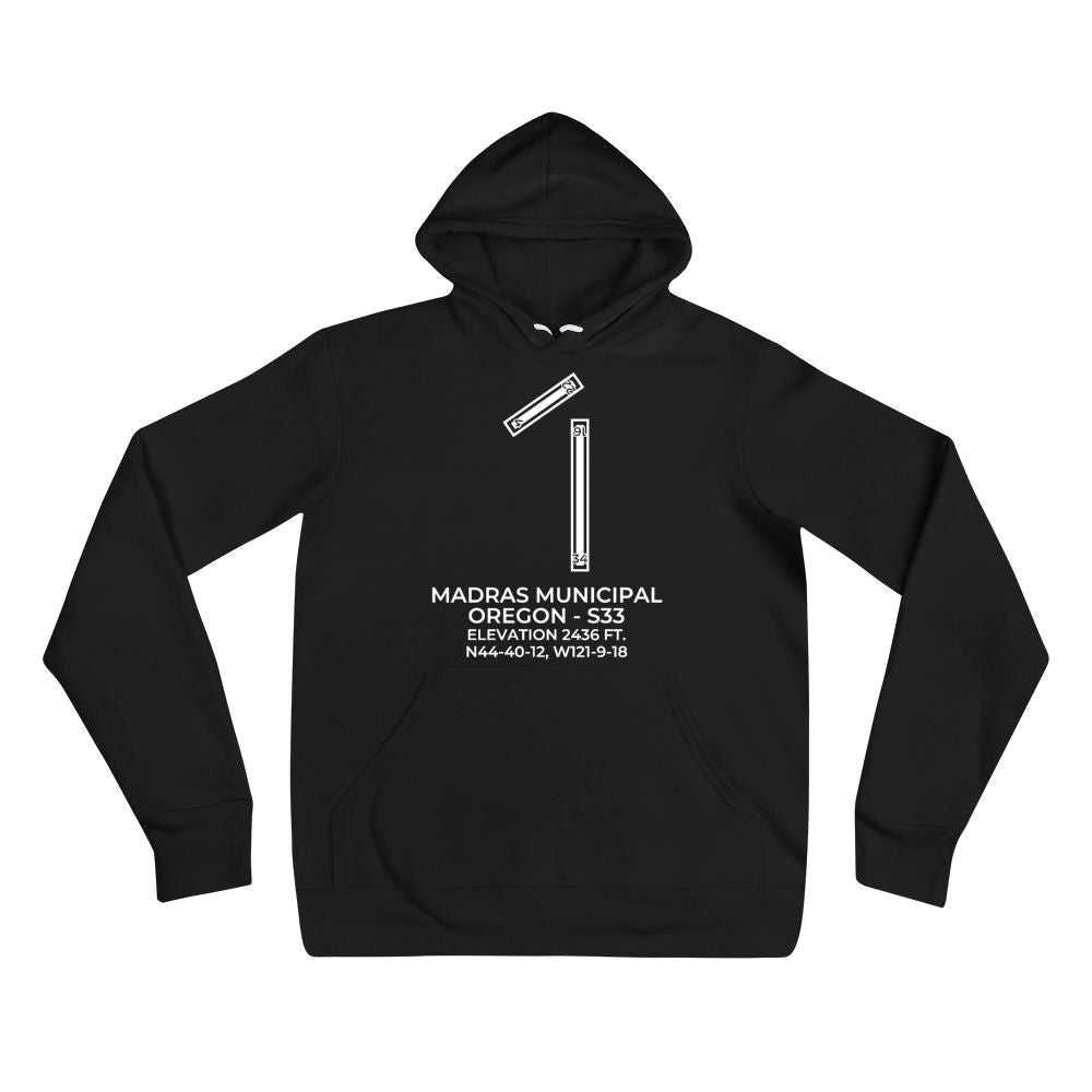 This hoodie depicts MADRAS MUNICIPAL near MADRAS; OREGON (S33).