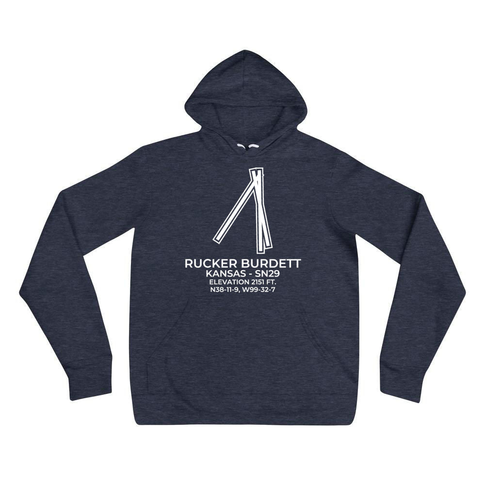 This hoodie depicts RUCKER in BURDETT; KANSAS (SN29).