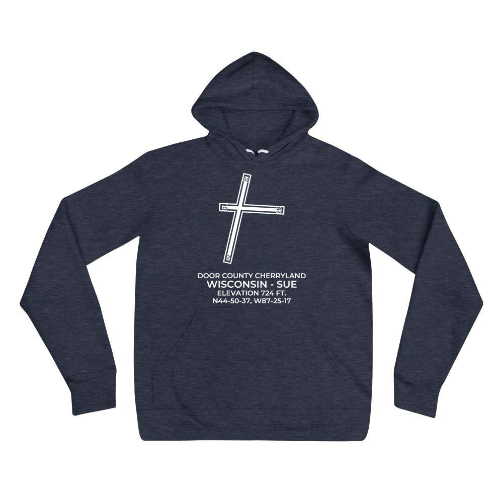 This hoodie depicts DOOR COUNTY CHERRYLAND in STURGEON BAY; WISCONSIN (SUE; KSUE).