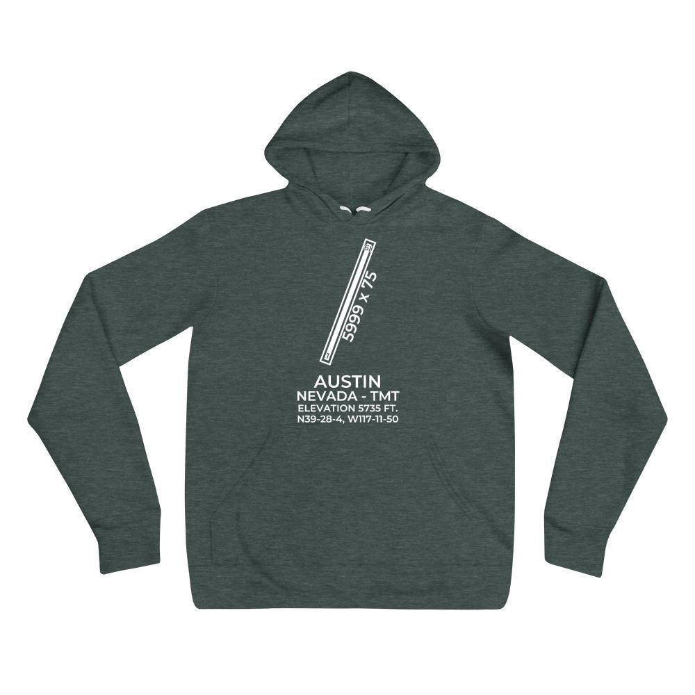 This hoodie depicts AUSTIN; NEVADA (TMT; KTMT).