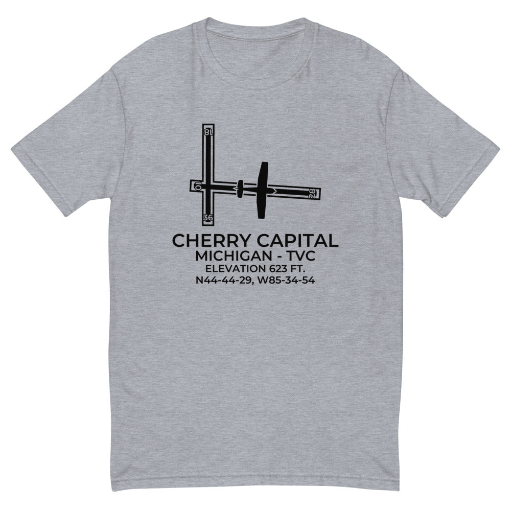 This design depicts CHERRY CAPITAL (TVC; KTVC) in TRAVERSE CITY; MICHIGAN (MI). It overlays a CESSNA 172 on runway 10.