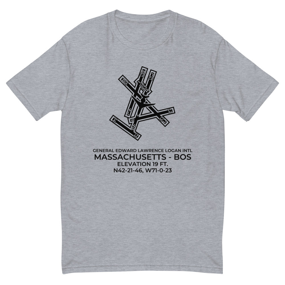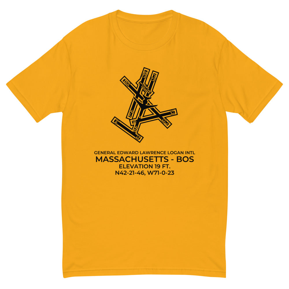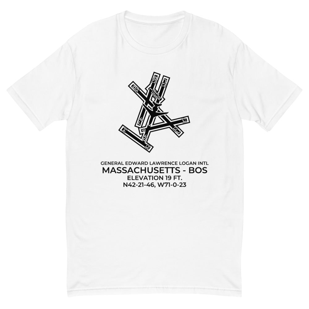 This design depicts General Edward Lawrence Logan Intl (BOS;KBOS) in Boston, Massachusetts (MA). It overlays a Dassault Falcon 7X on runway 22L.