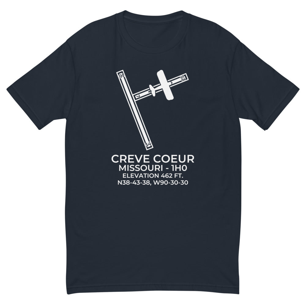 This design depicts CREVE COEUR in ST LOUIS; MISSOURI (1H0). It overlays a Boeing Stearman 75 on runway 07.
