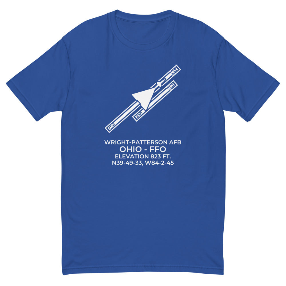 This design depicts Wright-Patterson AFB (FFO; KFFO) near Dayton; Ohio (OH). It overlays a North American XB-70 Valkyrie on runway 5L.